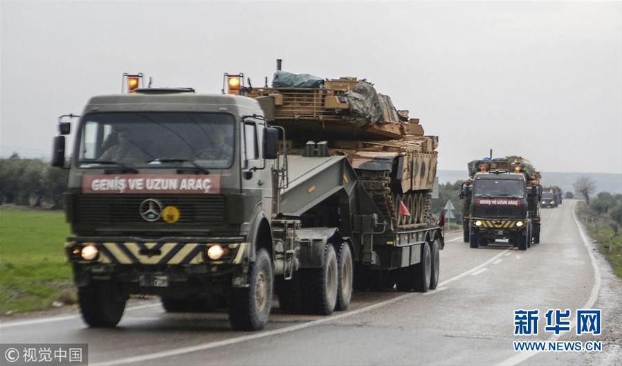 2019年1月4日,土耳其基利斯,土耳其派遣装甲车辆和坦克支援在叙利亚边境的部队。(图片来源:视觉中国)