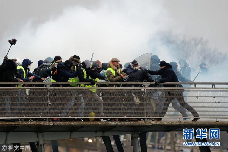 当地时间2019年1月5日,法国巴黎街头再次发生抗议示威活动,参与者还一度与警察发生冲突。(图片来源:视觉中国)