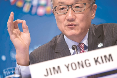 2017年4月20日,在美国华盛顿,世行行长金墉在新闻发布会上讲话。新华社发