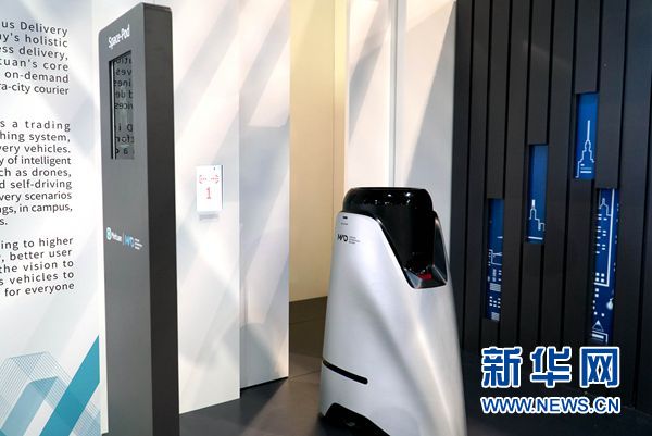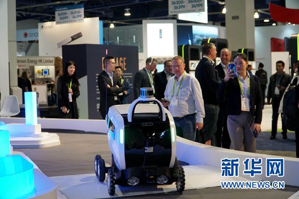 1月8日,拉斯维加斯消费电子展,参观者观看室内外无人配送车“小袋”展示。新华网发