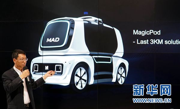 1月8日,拉斯维加斯消费电子展,美团无人配送部总经理夏华夏在签约仪式前介绍美团产品。新华网发