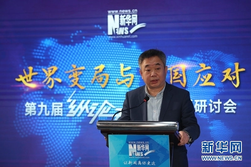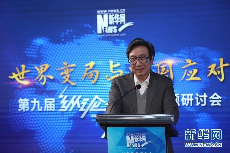 2019年1月10日,新华网第九届“纵论天下”国际问题研讨会成功举行。图为中国社会科学院美国研究所党委书记倪峰在进行主旨演讲。新华网 郭小天 摄