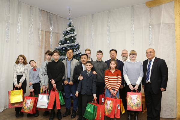 5日,在白俄罗斯工作的近20名中国招商局集团员工,在招商局集团董事兼招商局慈善基金会执行副理事长胡政的带领下,冒着大雪驱车200多公里,从白首都明斯克前往东部城市莫吉廖夫的SOS国际儿童村,为孩子们送去新年礼物。