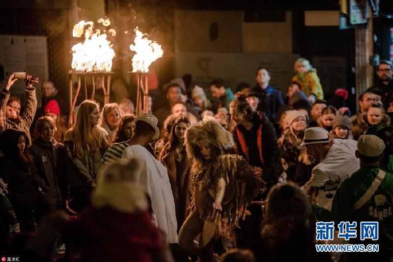 当地时间2019年1月11日,英国伦敦沃尔瑟姆福雷斯特区,沃尔瑟姆福雷斯特文化狂欢节开幕,艺术家上演精彩表演。(图片来源:东方IC)
