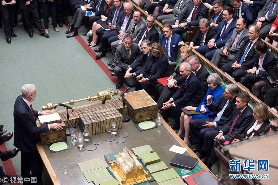 当地时间2019年1月16日,英国伦敦,英国议会下院进行辩论,以325票反对、306票赞成的投票结果否决了由反对党工党领导人科尔宾提出的对政府不信任动议。(图片来源:视觉中国)