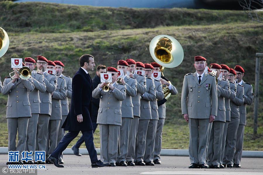 当地时间2019年1月17日,法国图卢兹,法国总统马克龙在当地空军基地检阅部队。(图片来源:视觉中国)