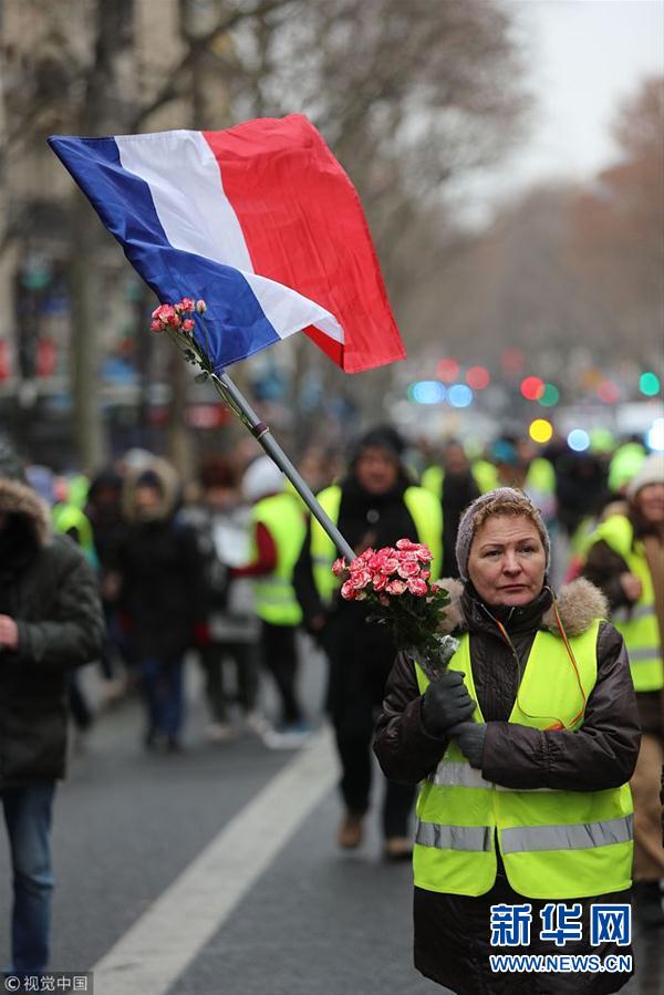 当地时间2019年1月19日,法国“黄背心”示威者走上街头发起示威抗议活动。(图片来源:视觉中国)