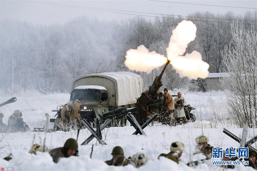 俄历史军事爱好者重演二战场景 纪念列宁格勒保卫战结束75周年