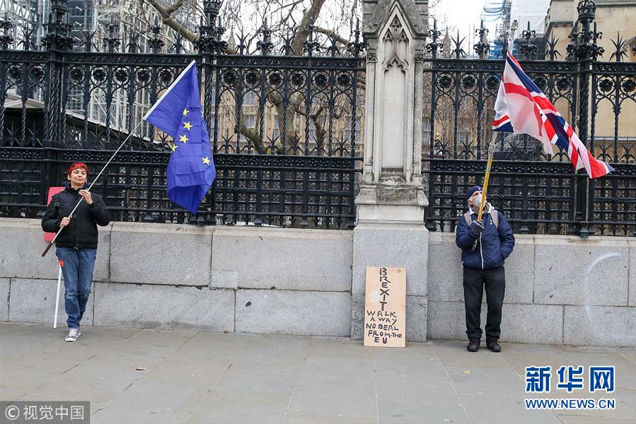 当地时间2019年1月21日,英国伦敦,英国“脱欧”支持者和反对者在议会大厦外抗议。(图片来源:视觉中国)