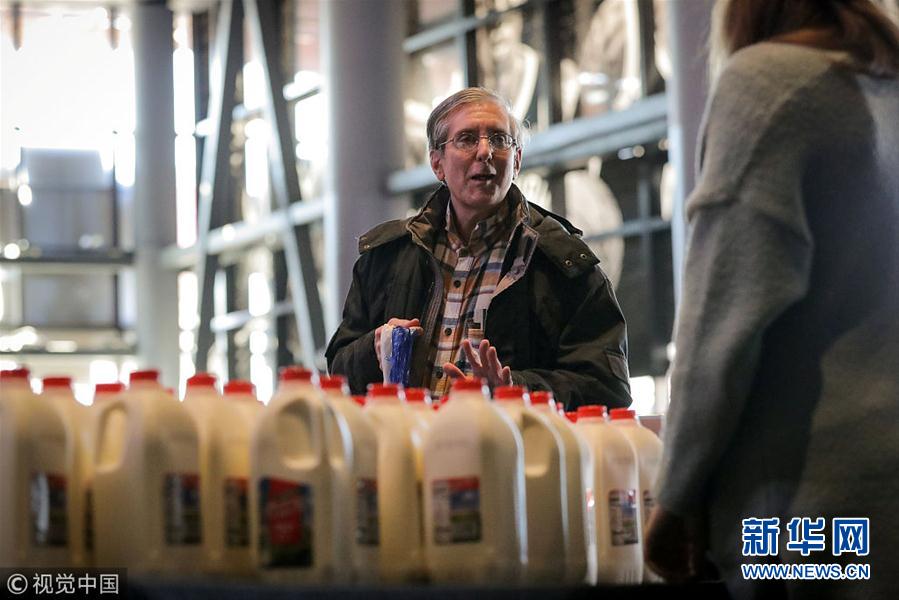 当地时间2019年1月22日,美国纽约布鲁克林,运输安全管理局(TSA)的雇员在巴克莱中心领取免费食物。纽约食品银行正在为因政府关闭而受到影响的联邦工作人员分发食品。(图片来源:视觉中国)