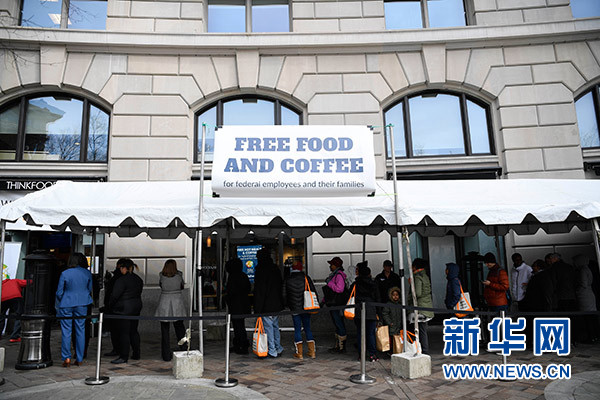 1月23日,在美国首都华盛顿,一些联邦政府雇员在一家公益组织的“应急食堂”外排队领取免费餐。 新华社记者 刘杰 摄