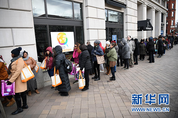 政府“停摆”依旧,冬寒并未远走,华盛顿哥伦比亚特区的道路上行人稀少、商户门厅冷清,但在国家广场附近一处街角却见人排起了长队。