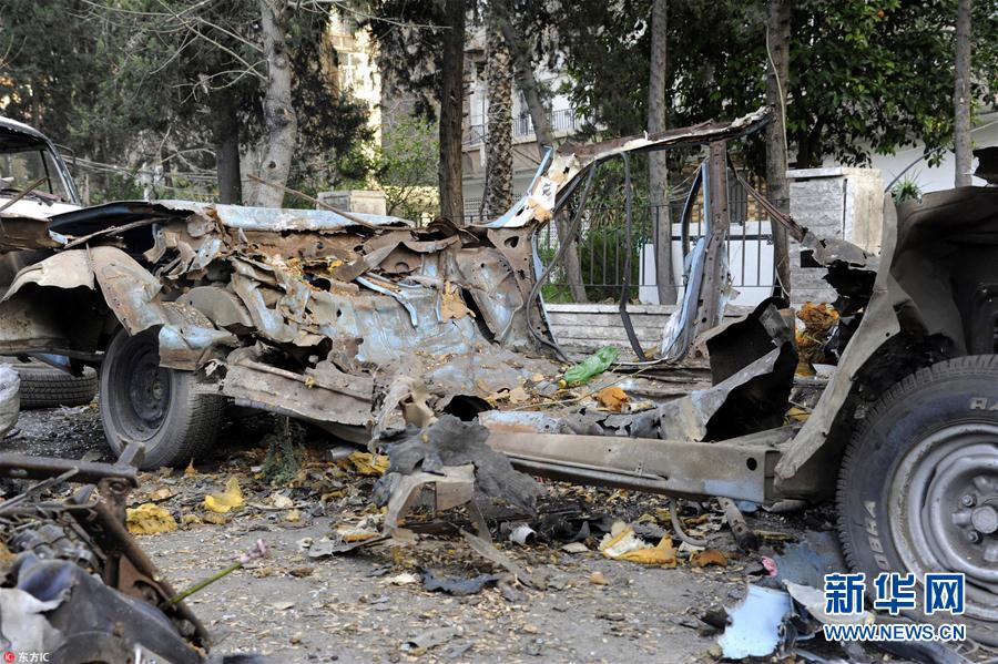当地时间2019年1月24日,叙利亚大马士革阿达维区,爆炸现场车辆被炸毁。叙利亚国家电视台报道说,爆炸发生在大马士革东部的阿达维区,造成一些设施损毁,但未造成人员伤亡。经调查,爆炸装置被安装在一辆停放在路边的汽车上。据报道,爆炸地点位于俄罗斯驻叙利亚大使馆附近。目前尚不清楚俄罗斯大使馆是否为袭击目标。 (图片来源:东方IC)