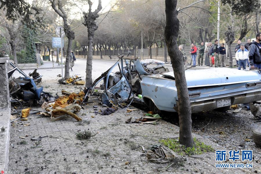 当地时间2019年1月24日,叙利亚大马士革阿达维区,爆炸现场车辆被炸毁。叙利亚国家电视台报道说,爆炸发生在大马士革东部的阿达维区,造成一些设施损毁,但未造成人员伤亡。经调查,爆炸装置被安装在一辆停放在路边的汽车上。据报道,爆炸地点位于俄罗斯驻叙利亚大使馆附近。目前尚不清楚俄罗斯大使馆是否为袭击目标。(图片来源:东方IC)