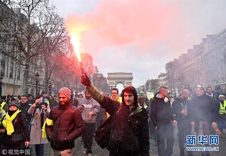 当地时间2019年1月26日,法国巴黎,“黄背心”示威者继续参加示威游行。(图片来源:视觉中国)