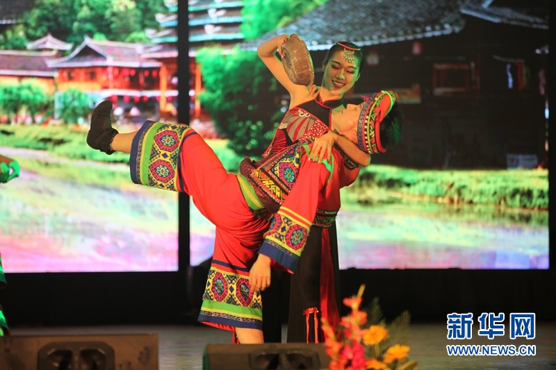 1月27日,在尼泊尔加德满都市中心的尼军俱乐部内,魅力文旅发展有限公司的演员在表演舞蹈《激情合拢宴》脱。当天,尼泊尔中国文化中心和中国湖南省文化和旅游厅联合主办“欢乐春节·锦绣潇湘”为主题的演出,吸引了数百人前来观看,反响热烈。 新华社记者周盛平摄