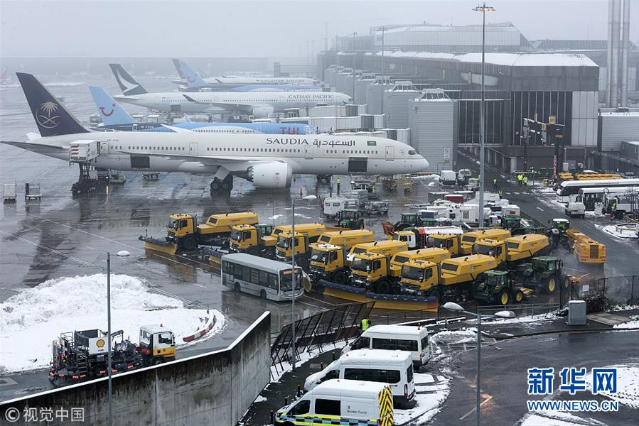 英国曼彻斯特机场遭“冰封”飞机停飞