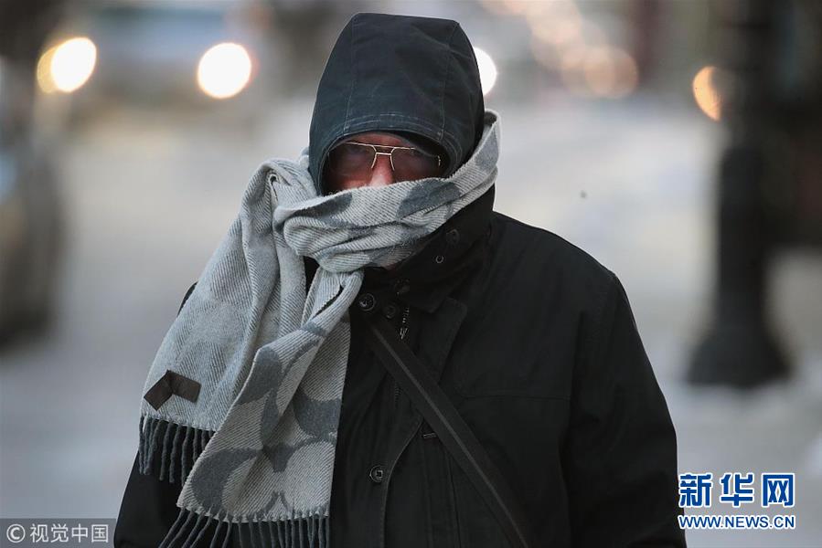 当地时间2019年1月30日,美国伊利诺斯州芝加哥,当地遭寒流入侵。1月29日,美国中北部地区迎来寒流。(图片来源:视觉中国)