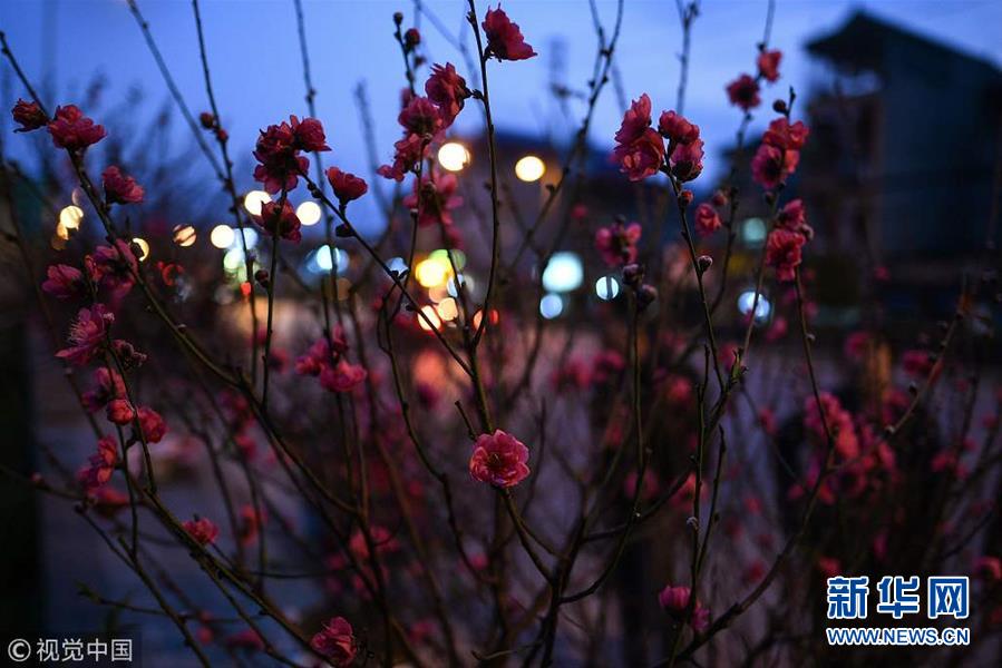 当地时间2019年2月1日,越南河内,农历新年到来之前,街头小贩卖桃花。农历新年是越南重要的节日,桃花会被当地人用作传统新年装饰。(图片来源:视觉中国)