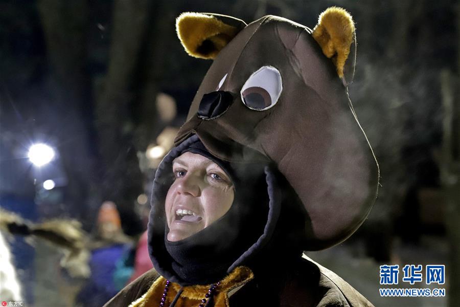 当地时间2019年2月2日,美国宾夕法尼亚州庞克瑟托尼,当地庆祝一年一度的土拨鼠日。(图片来源:东方IC)