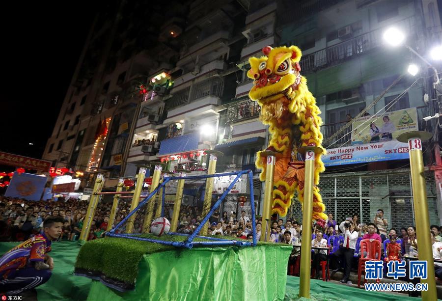 缅甸仰光庆祝中国农历新年 舞狮大赛精彩纷呈