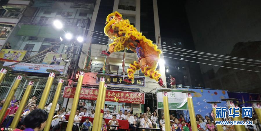 缅甸仰光庆祝中国农历新年 舞狮大赛精彩纷呈
