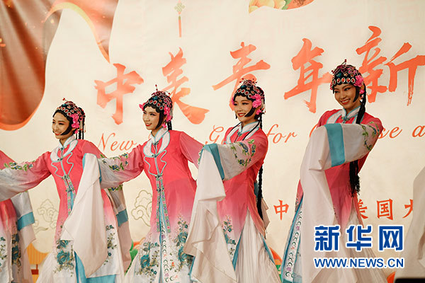 2月16日,在美国首都华盛顿,演员在中美青年新春联欢活动上表演。 新华社记者 刘杰 摄