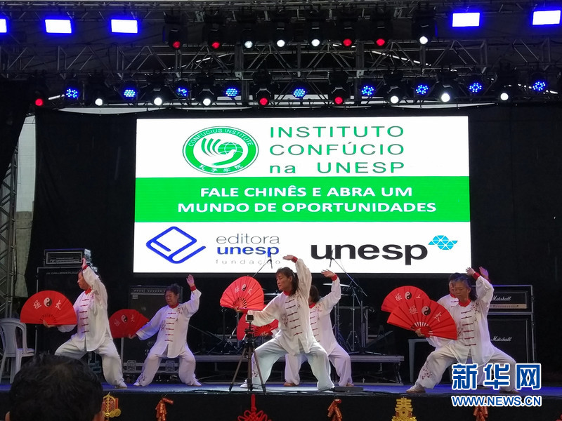 华人团体在元宵节庆典上表演太极扇。宫若涵摄