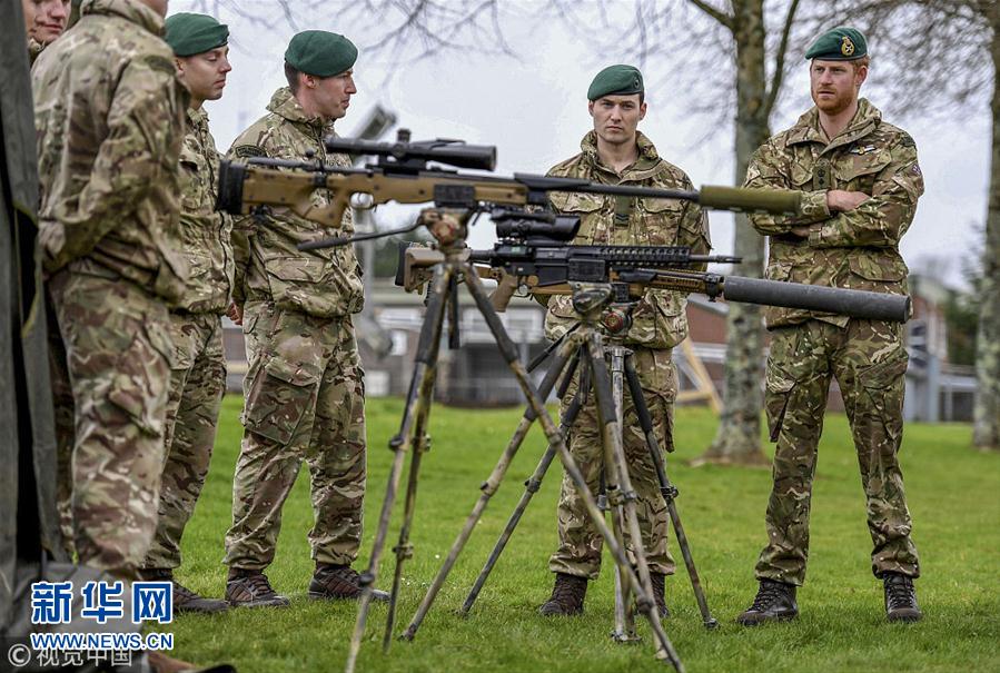 英国哈里王子参观皇家海军陆战队基地 头戴贝雷帽亮相
