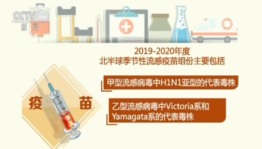 世卫组织推荐的2019-2020年度北半球季节性流感疫苗组份主要包括甲型流感病毒中H1N1亚型的代表毒株、乙型流感病毒中Victoria系和Yamagata系的代表毒株、另外由于最近流行的具有不同抗原性和基因特性的甲型H3N2亚型流感病毒的比例在发生改变,所以这一疫苗组份延迟到2019年3月21公布。