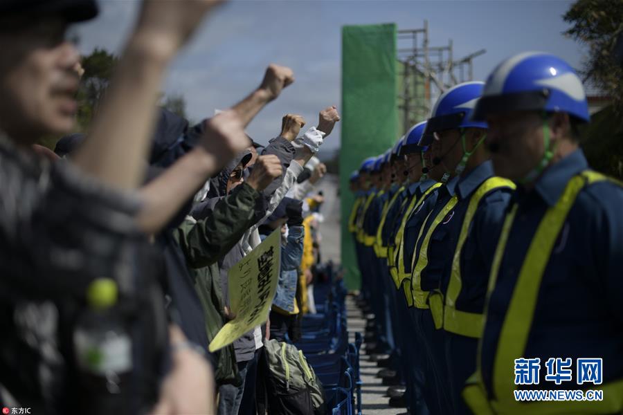 冲绳民众静坐抗议 反对驻日美军迁新基地