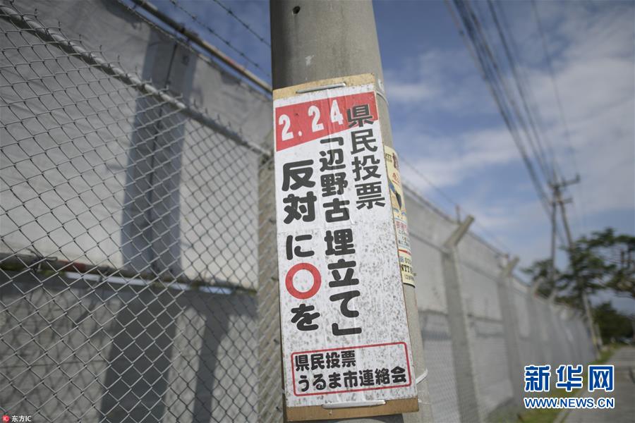 当地时间2019年2月21日,日本冲绳县名护市,当地示威者在施瓦布营门口静坐抗议,阻止日本政府动用建筑车辆通过,反对在边野古建设新基地。24日(周日),日本冲绳将就美军普天间机场搬迁至该县名护市边野古进行公投。(图片来源:东方IC)