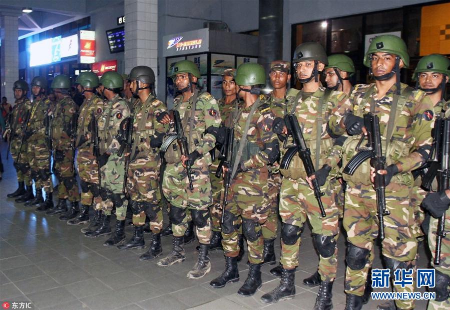 当地时间2019年2月24日,孟加拉国吉大港,孟加拉国军方安全人员守卫在机场。据媒体报道,孟加拉国航空公司一架从达卡经吉大港飞往迪拜的客机起飞后遭劫持,在该国吉大港市的机场紧急迫降。机上142名乘客首先撤离,1名男性嫌疑人和7名机组成员滞留在客机上,特种部队随后控制了客机,劫机事件的嫌疑人被特种部队击伤后不治身亡。(图片来源:东方IC)