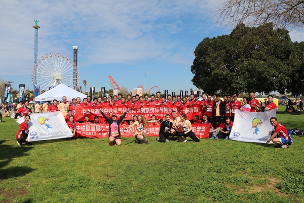 承建特拉维夫轻轨红线项目的中铁隧道局以色列分公司当天组织了50多名员工参加此次马拉松赛,半数以上的参赛员工都选择了10公里及以上的赛段。他们在比赛中统一着鲜艳醒目的红色队服。