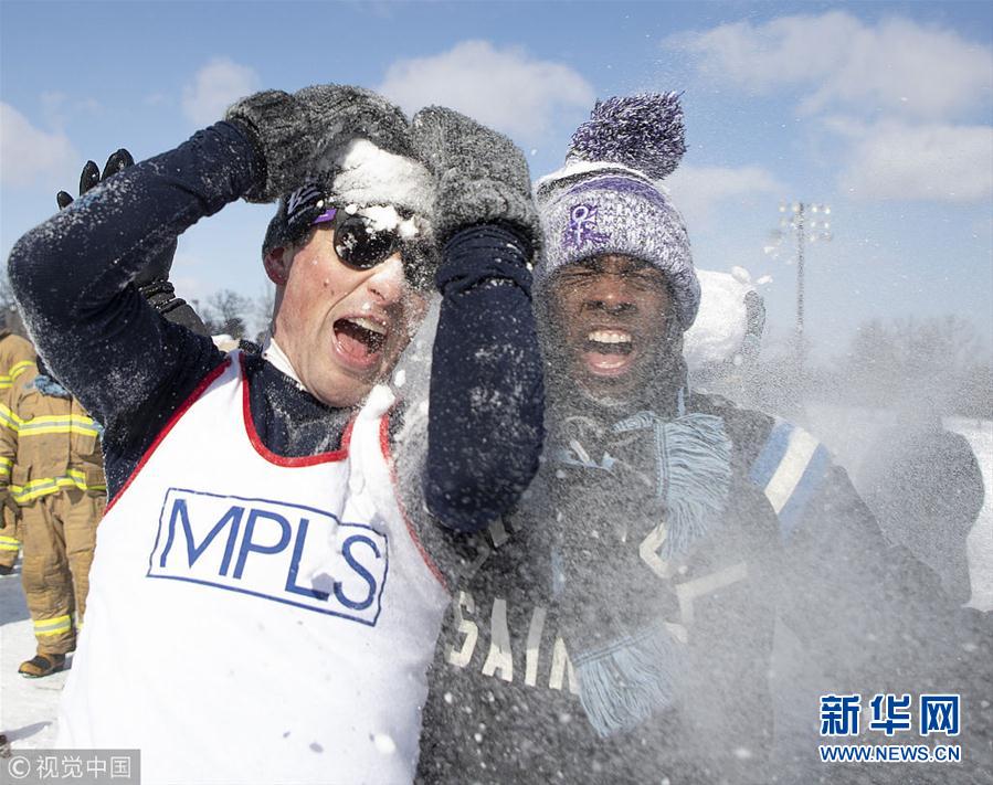 当地时间2019年2月24日,美国明尼苏达州圣保罗,当地举办雪球大战,圣罗保和明尼阿波利斯两城人民进行打雪仗对决。 (图片来源:视觉中国)