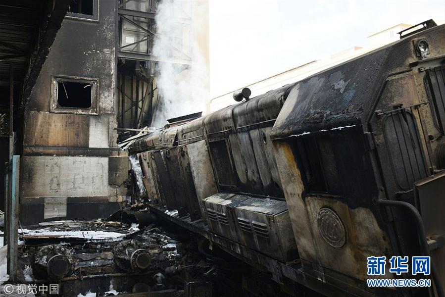 当地时间2019年2月27日,埃及首都开罗拉美西斯火车站发生火灾。据当地媒体报道,火灾系一列列车撞上水泥护栏导致车头爆炸引起。(图片来源:视觉中国)