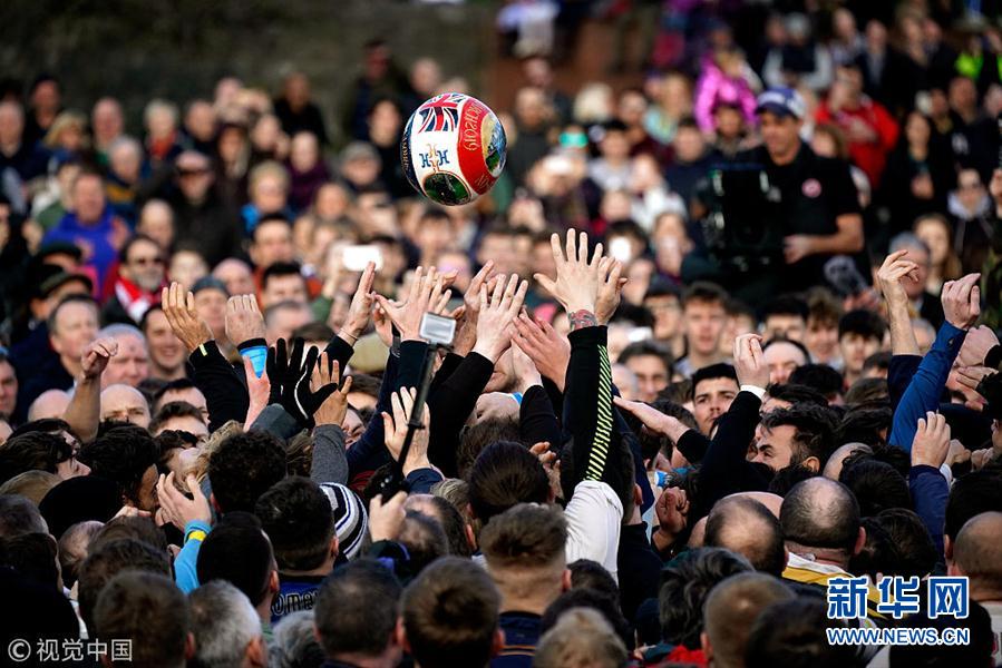 英国小镇举办忏悔节足球赛 你争我抢场面激烈