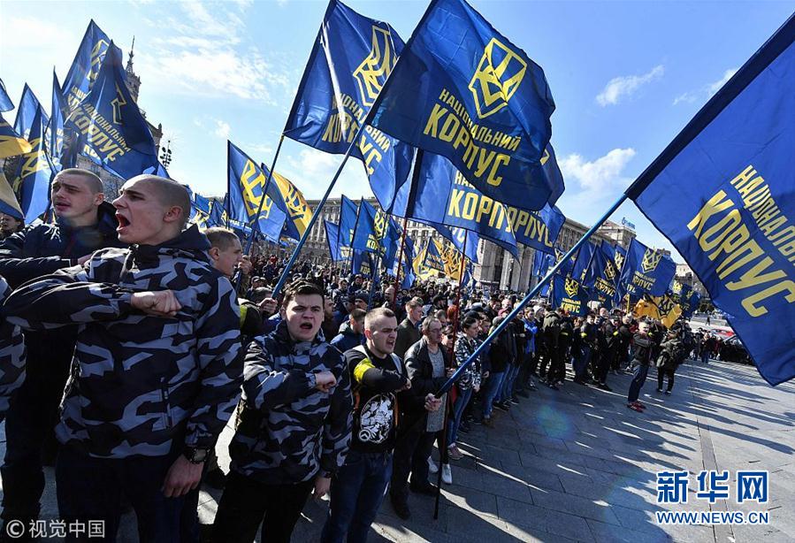 当地时间2019年3月9日,乌克兰基辅,乌克兰民族主义政党的激进分子集会要求调查乌克兰武装部队官员的腐败问题,与警方发生激烈冲突。(图片来源:视觉中国)