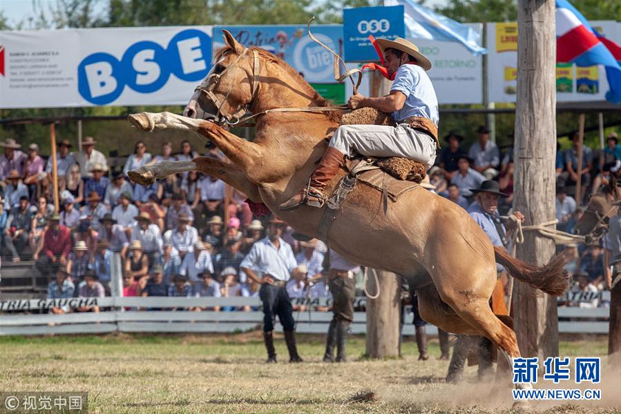当地时间2019年3月16日,乌拉圭塔夸伦博,当地举行传统驯马比赛。 (图片来源:视觉中国)