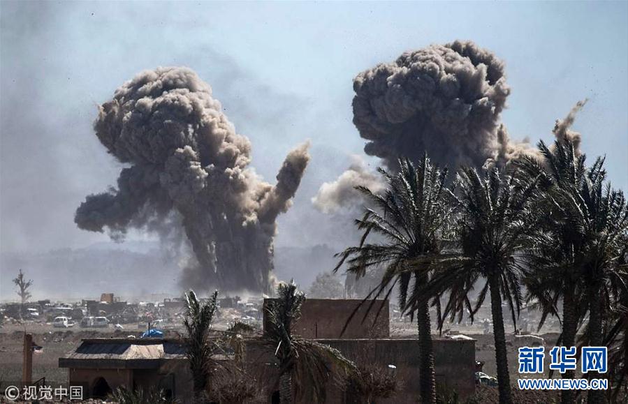 当地时间2019年3月18日,叙利亚代尔祖尔省,“叙利亚民主军”持续进攻极端组织“伊斯兰国”的最后