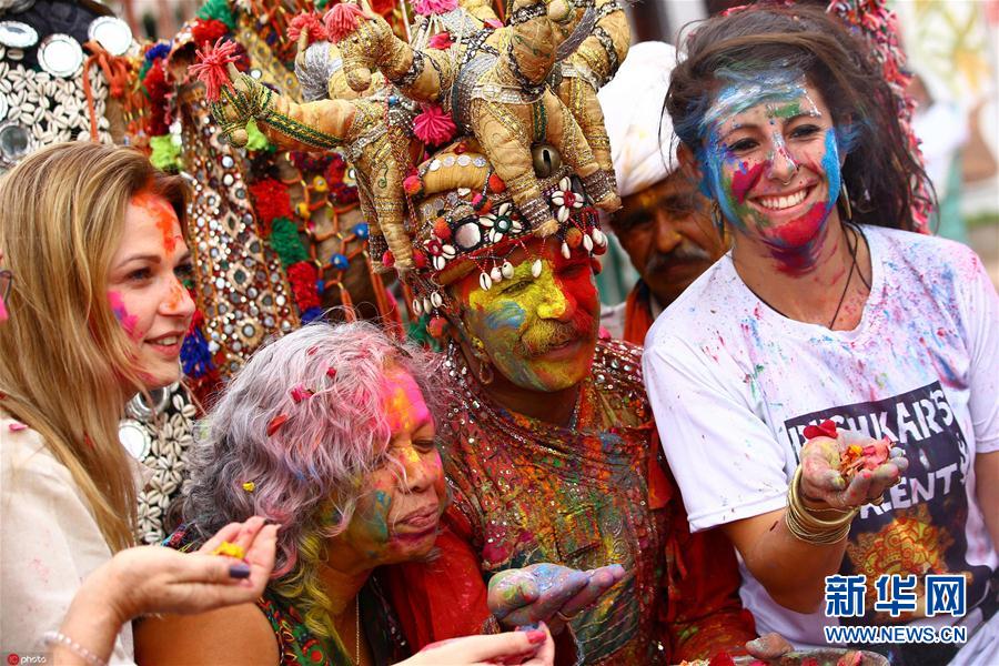 当地时间2019年3月18日, 印度北方邦,“胡里节”狂欢继续,民众参加“粉末大战”。(图片来源:东方IC)