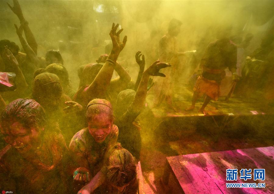 当地时间2019年3月18日, 印度北方邦,“胡里节”狂欢继续,民众参加“粉末大战”。(图片来源:东方IC)