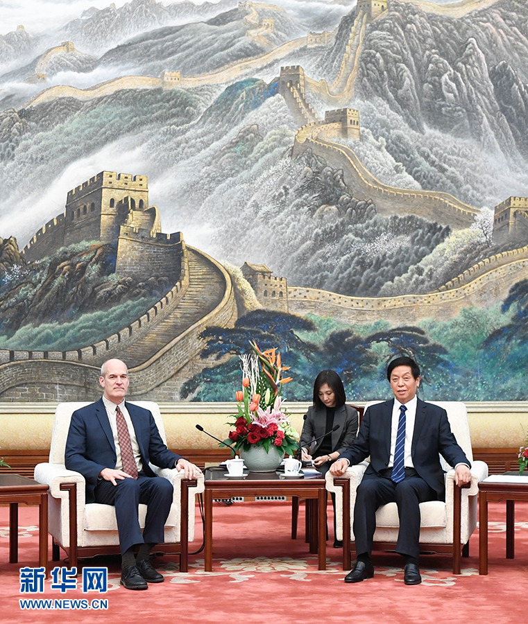 3月22日,全国人大常委会委员长栗战书在北京人民大会堂会见美国众议院“美中工作小组”代表团。 新华社记者申宏摄