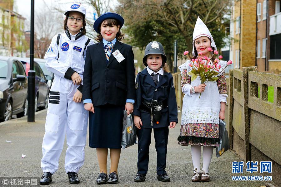 伦敦犹太人穿奇装异服欢庆普林节