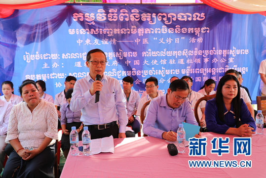 新华网金边3月25日电(记者高炳南)中国驻柬埔寨大使馆驻暹粒领事办公室与柬埔寨暹粒省政府22日在柬埔寨女王宫县德拜乡举行“中柬友谊情——中医‘义诊日’活动”。中国驻柬埔寨大使馆驻暹粒领事办公室主任刘志杰、暹粒省副省长本布拉格等出席。