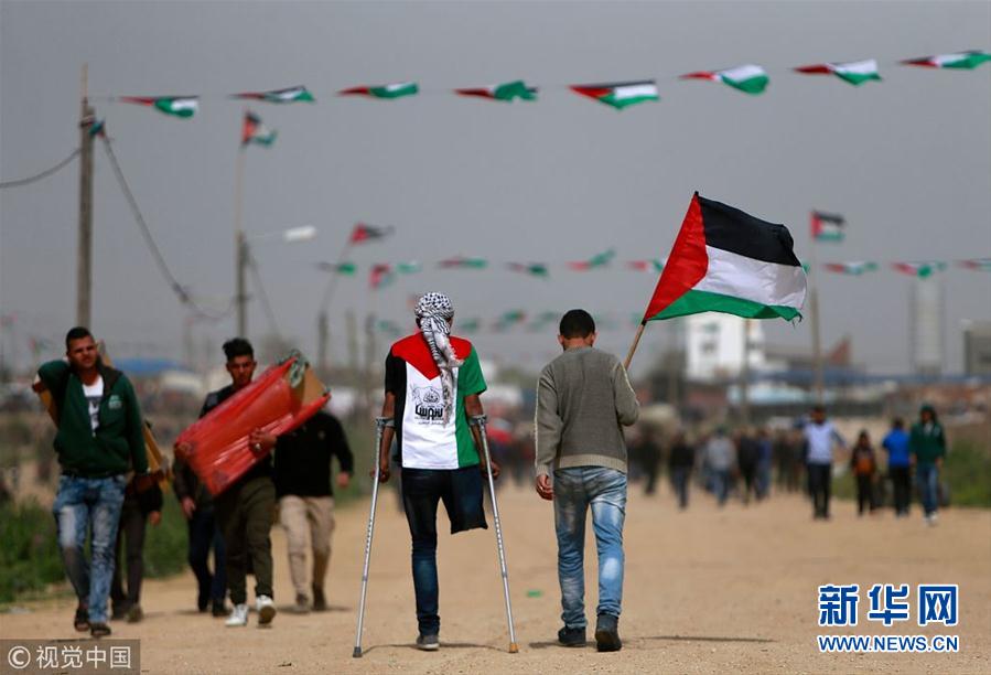 当地时间2019年3月30日,巴勒斯坦人在加沙地带举行“百万游行”,纪念“回归大游行”一周年。(图片来源:视觉中国)