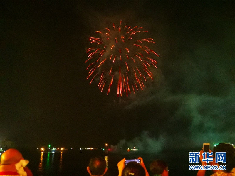 4月1日,美丽的烟花在阿皮亚港绽放。2019“中国—太平洋岛国旅游年”1日在萨摩亚首都阿皮亚开幕。记者张永兴 摄