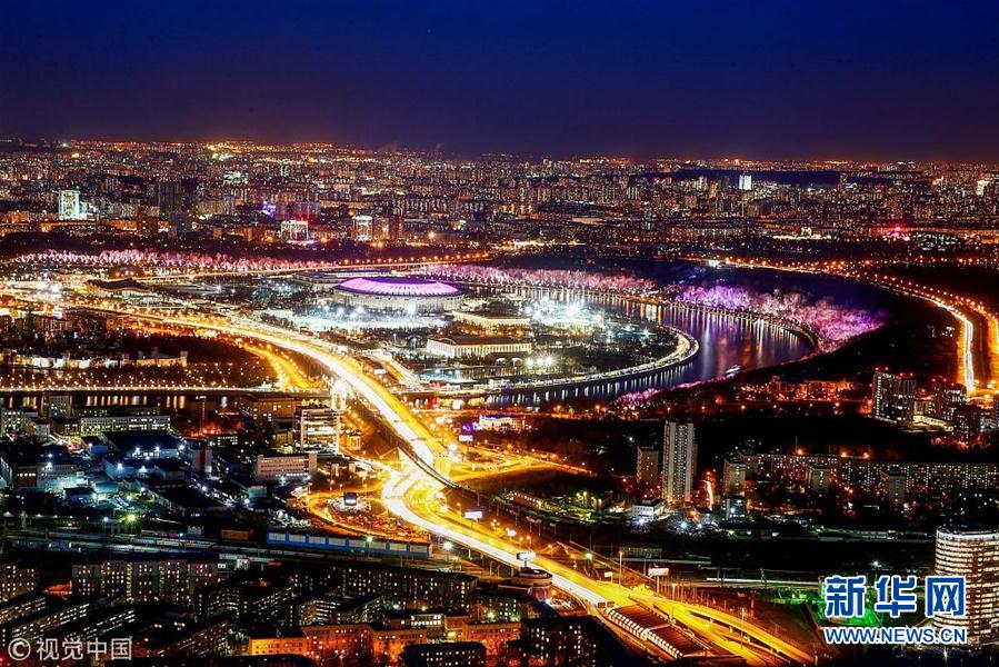 俯瞰莫斯科夜景灯光璀璨 华丽大都市尽收眼底
