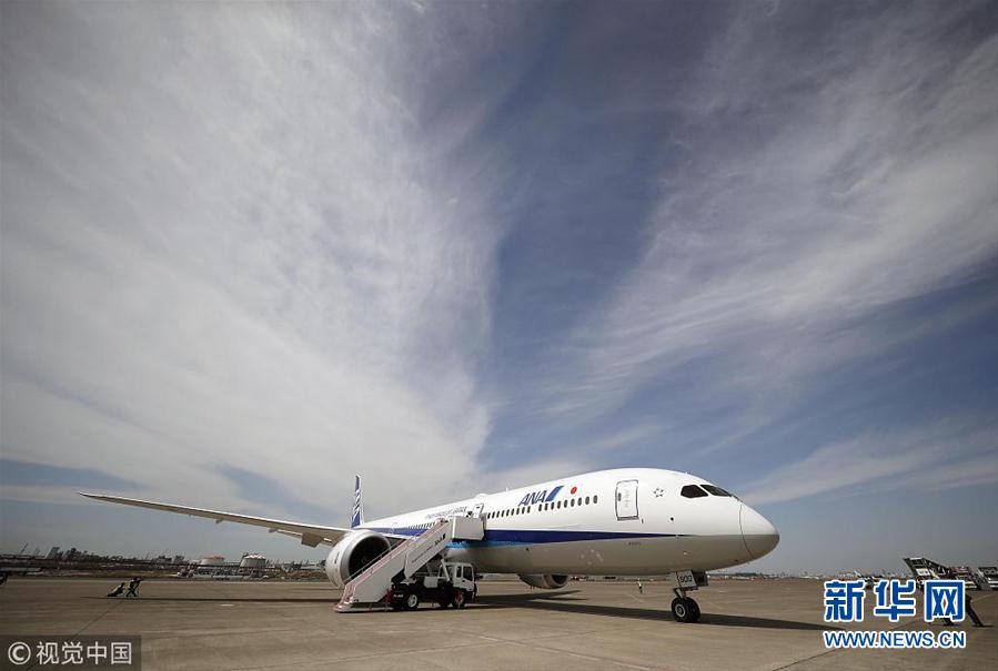 当地时间2019年4月5日,日本东京羽田机场,全日空航空公司向媒体展示了三架新型波音787-10飞机中的一架。(图片来源:视觉中国)