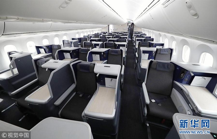当地时间2019年4月5日,日本东京羽田机场,全日空航空公司向媒体展示了三架新型波音787-10飞机中的一架。(图片来源:视觉中国)